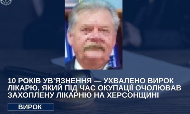 Лікар, який під час окупації очолював захоплену лікарню на Херсонщині, засуджений до 10 років позбавлення волі з конфіскацією.