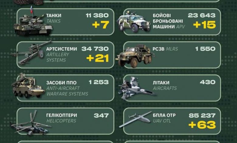 1100 окупантів, 15 ББМ та 7 танків: у Генштабі ЗСУ назвали бойові втрати рф