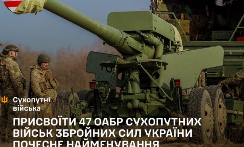 7 квітня 2026 року Президент України підписав Указ «Про присвоєння почесного найменування 47-й артилерійській бригаді Сухопутних військ ЗСУ».