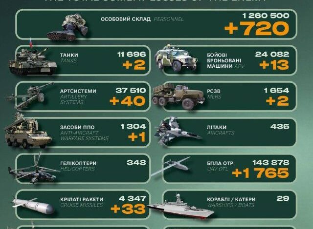 За минулу добу бойові втрати країни-агресора становили 720 одиниць особового складу.