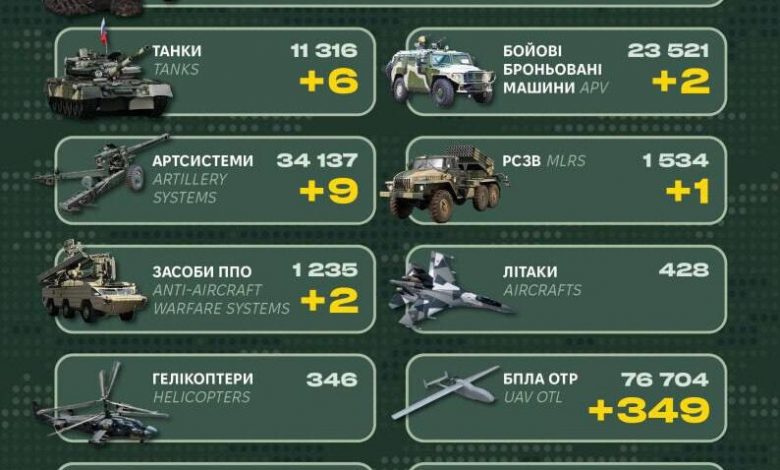 - БПЛА оперативно-тактичного рівня / UAV operational-tactical level — 76 704 (+349) од.