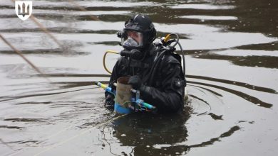 Один із окупантів. сидячи поблизу водойми, почав жбурляти в дрон все, що потрапляло під руку, сподіваючись якось запобігти ураженню.