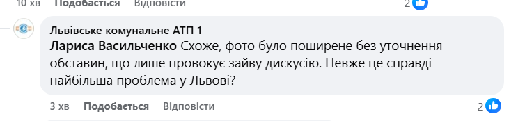 Після суспільного резонансу перевізник прокоментував ситуацію на своїй сторінці у Facebook. В АТП-1 спершу побідкалися, що цей випадок спровокував хвилю жвавих дискусій, мовляв, це штучне нагнітання.