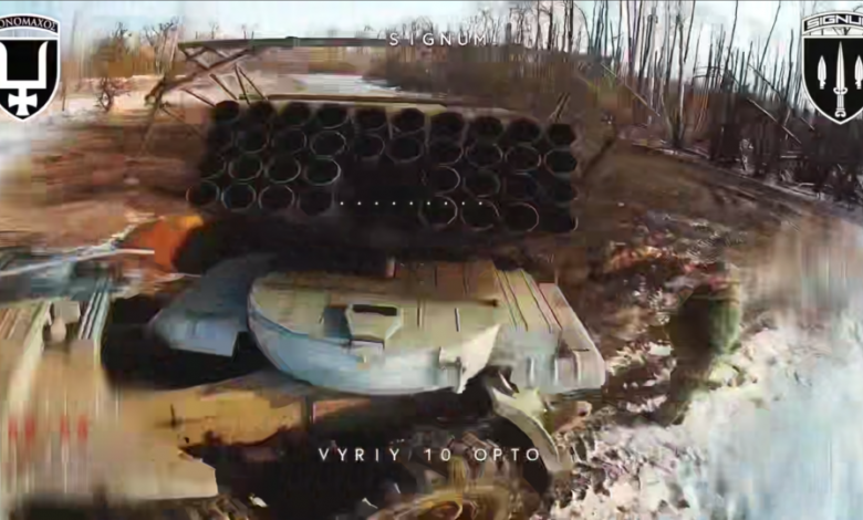 Дрон прилетів, коли російська РСЗВ лише готувалася відкривати вогонь. Скрін з відео 53-ї бригади