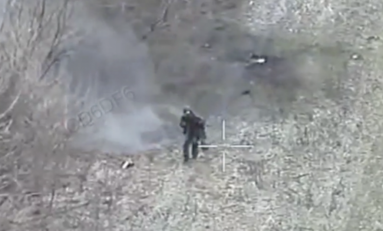 У ролику видно, як один окупант зміг витримати два влучання дронів, але третій добив його.