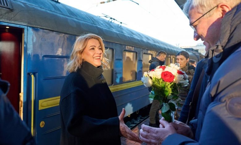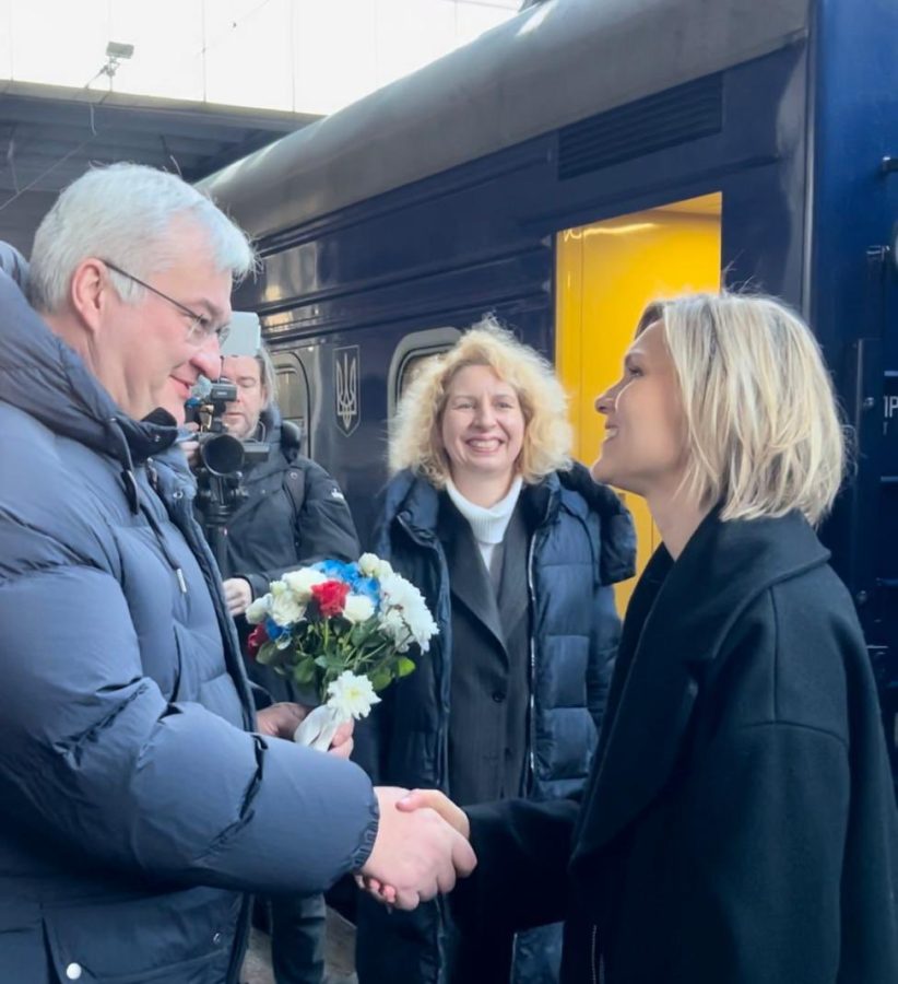 Сибіга зустрів делегації на київському залізничному вокзалі вранці 24 лютого. Він подякував лідерам за «тверду і непохитну підтримку України та наших спільних європейських цінностей і принципів».