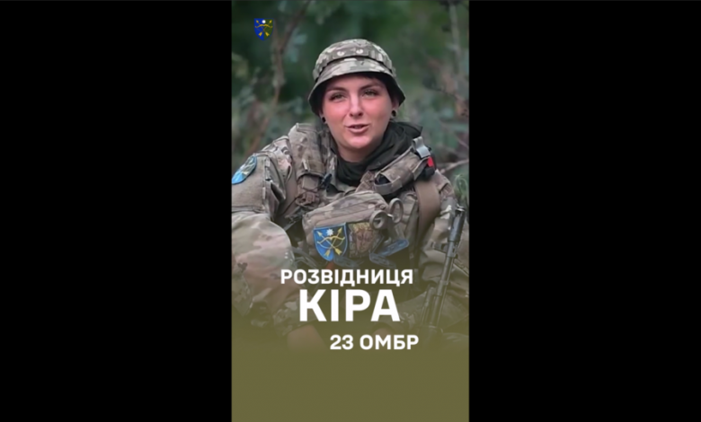 Командир взводу спостереження розвідувальної роти 23-ї механізованої бригади 20-го армійського корпусу Сухопутних військ ЗСУ Кіра у 22 роки залишила роботу бармена й навчання та добровільно підписала контракт, щоб захищати Україну.