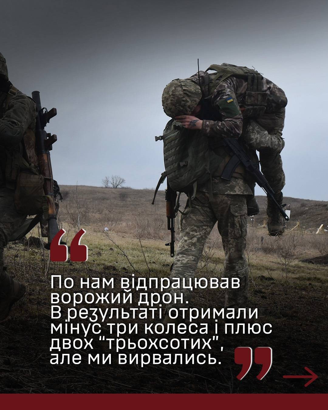 «До позиції він дістався без особливих пригод, але під час завантаження бійців у авто нас атакував ворожий безпілотник — зробив кілька скидів», — йдеться в повідомленні.