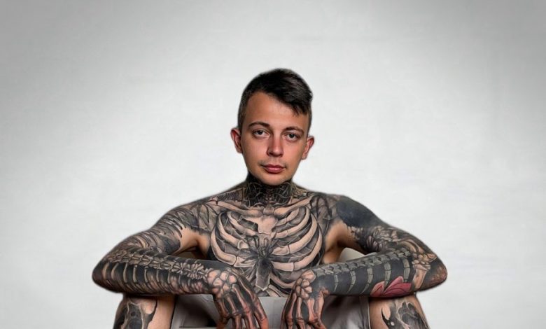 За словами керівниці Нацпроєкту рекордів, упродовж п’яти років він створював детальне анатомічне відтворення людського скелета на власному тілі. Разом із лікарем-патологоанатомом Лана Вєтрова підрахували 230 татуювань на його тілі у вигляді кісток.