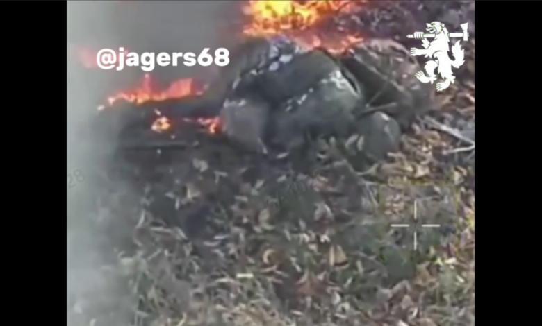 Ворожий штурмовик перетворюється на вугілля у Покровську. Скрін з відео 68-ї бригади