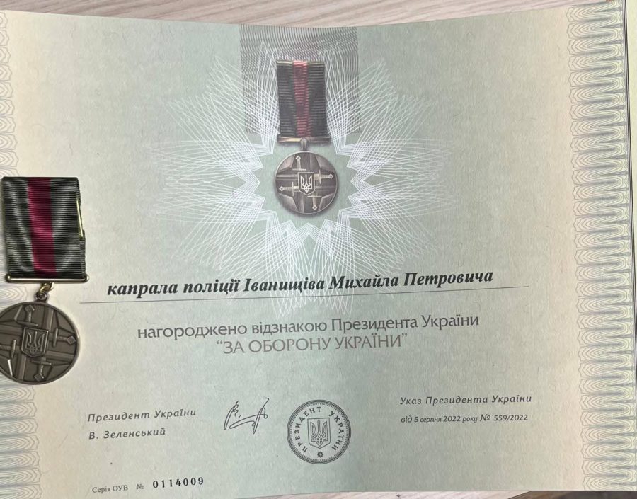 Зазначимо, що торік Михайла Іванищіва головком ЗСУ відзначив «Золотим Хрестом». Захисник із березня 2023 року служить у складі Об’єднаної штурмової бригади Національної поліції України «Лють».