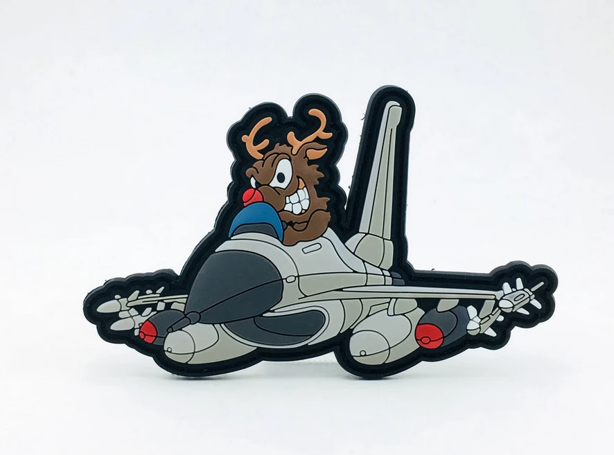 На одному з них зображено оленя Рудольфа, який керує F-16, виконуючи роль повітряної підтримки для Санти.