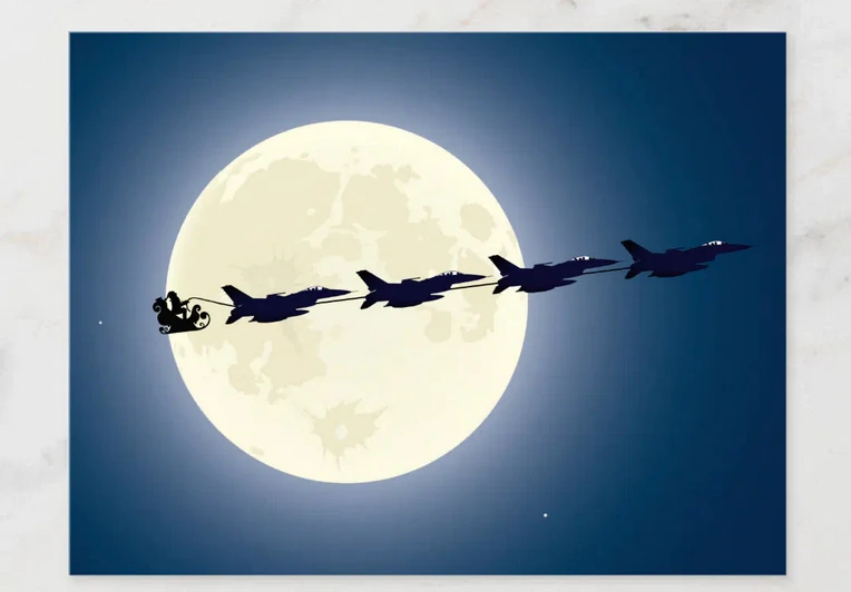 Також у продажу є поштівки з льотною тематикою. Зокрема, на одній популярній новорічній листівці зображено Санту в санях, які на тлі повного місяця тягнуть винищувачі F-16.