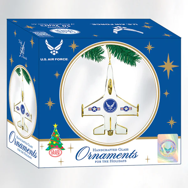 А в елітних колекціях зустрічаються скляні та навіть кришталеві моделі. Наприклад, компанія Glass Baron пропонує скляний кулон-орнамент у формі винищувача, декорований справжнім 22-каратним золотом. Цей виріб, як і попередні, «офіційно ліцензований ВПС США».