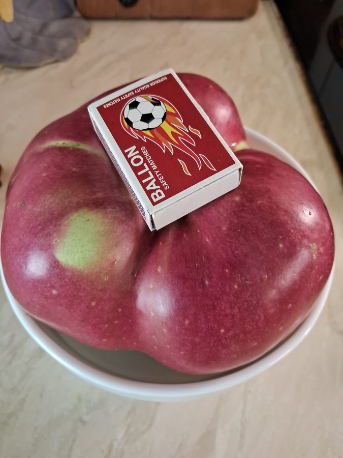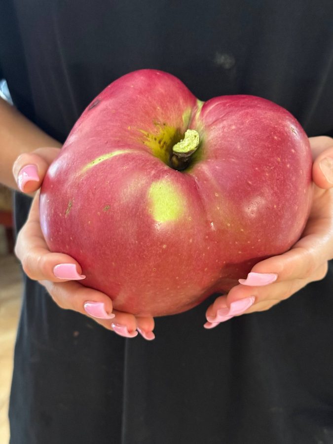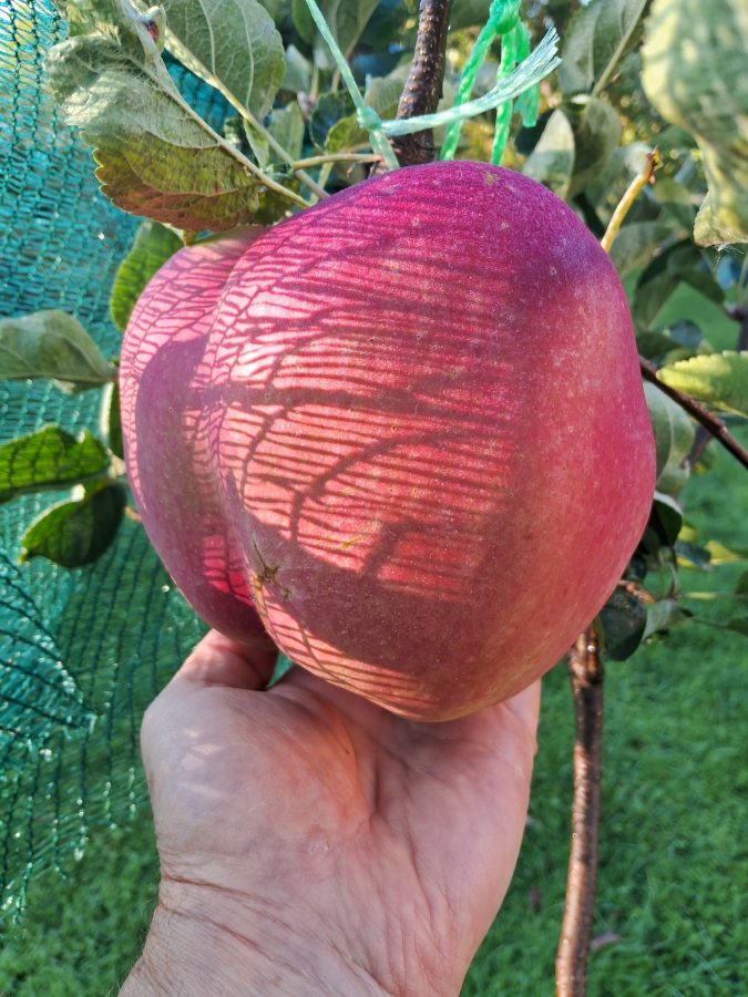 Садівник посадив 10 трирічних яблунь, серед яких один саджанець французького сорту «Джумбо Помм» дав великий плід. Спочатку на гілці зав’язалося три яблука, проте залишилося лише одне, яке досягло рекордних розмірів.