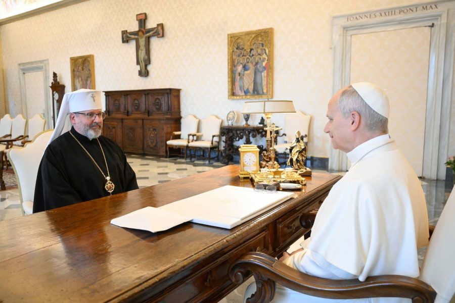 Папа Лев XIV прийняв Главу УГКЦ в Апостольському палаці Ватикану. На початку зустрічі Блаженніший Святослав подякував Святішому Отцеві за солідарність і підтримку України, дипломатичні зусилля Святого Престолу на шляху до справедливого та тривалого миру в Україні.