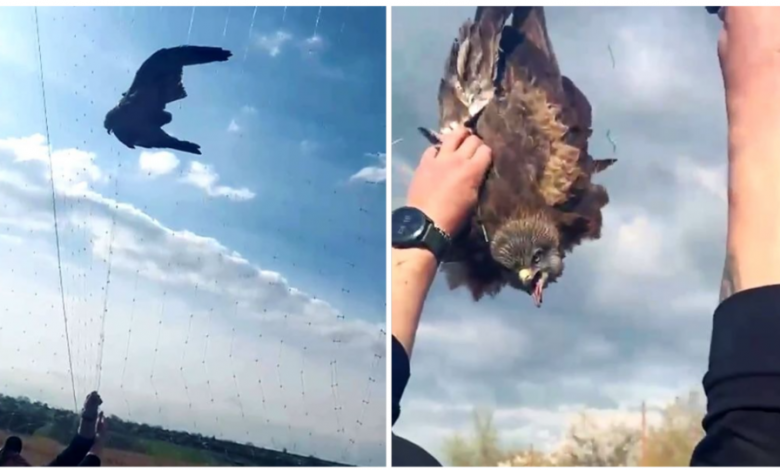«Лицарі» врятували на Великдень яструба, який опинився в пастці антидронової сітки