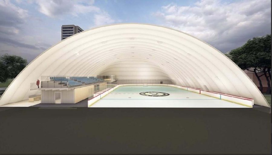 Так, 60% фінансування надає приватний благодійник, решту – місто. Конструкція переносна, з арковим надувним перекриттям, розрахована на 30 років і дозволяє підтримувати лід навіть улітку.
