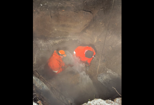 Через прорив утворився «фонтан», тому спочатку аварійній бригаді треба було зупинити витік і відкачати воду. Люди працювали, у мороз стоячи по пояс у воді. Роботи тривали всю ніч і станом на ранок 14 січня продовжуються.