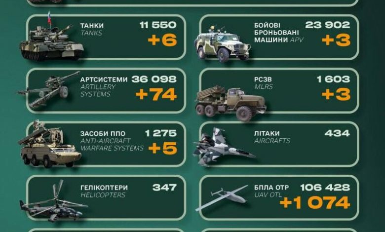 • БПЛА оперативно-тактичного рівня — 106 428 (+1074) од.