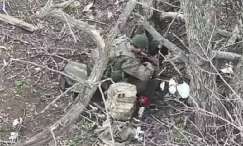Пілоти аеророзвідки штурмового батальйону «Морок» 225-го штурмового полку зафіксували російського піхотинця, який порпався у речах загиблих окупантів.
