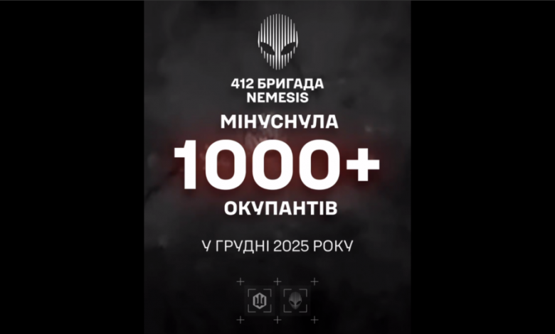 Оператори 412-ї бригади Nemesis Сил безпілотних систем у грудні 2025 року відмінусували понад 1000 окупантів. Це дорівнює чисельності особового складу штурмовиків у полку в армії рф.