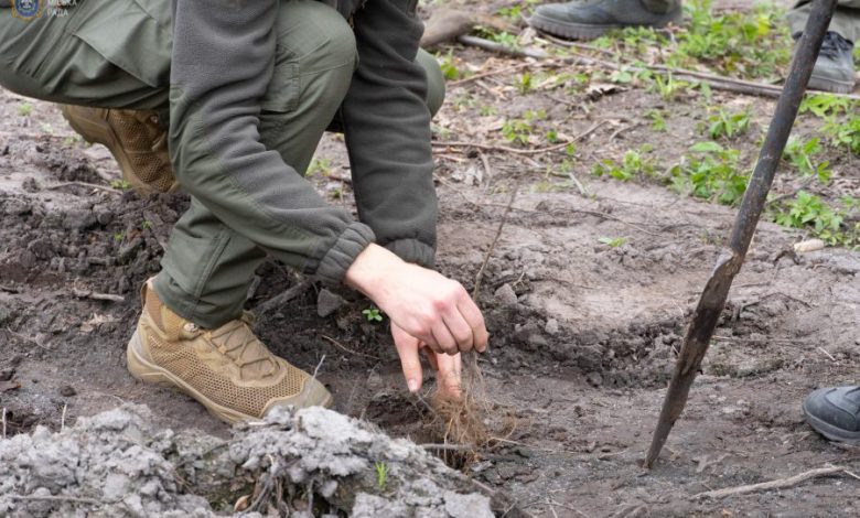До створення лісу памʼяті на честь Андрія Позняка долучилися десятки небайдужих місцевих мешканців та військовослужбовців. Серед них – були й двоє маленьких синів полеглого захисника та його дружина Анна.