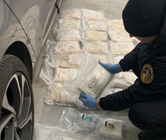 Зокрема, знайдено п’ять пакетів кокаїну вагою 6,454 кг, 20 пакетів PVP-солі вагою 20,587 кг, а також 584 грами MDMA-амфетаміну.