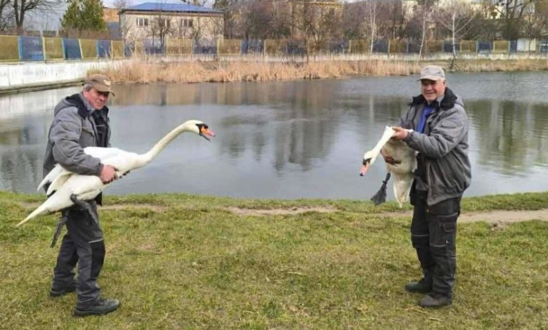 До Левандівського озера після зимівлі повернулася пара лебедів, яких на початку січня тимчасово евакуювали через сильні морози. Про це повідомили у пресслужбі Львівської міської ради.