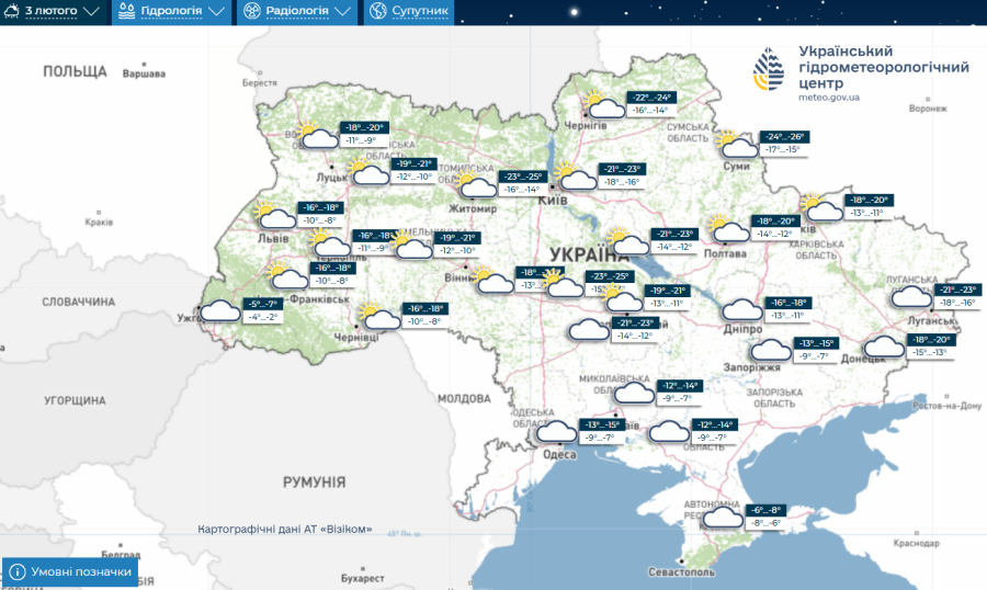 Погода 2-4 лютого, Укргідрометцентр