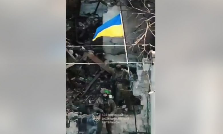 На підтвердження у соцмережах було оприлюднено відео зі встановленням бійцями 132 окремого розвідувального батальйону державного символу України на одній із будівель зруйнованого боями села.