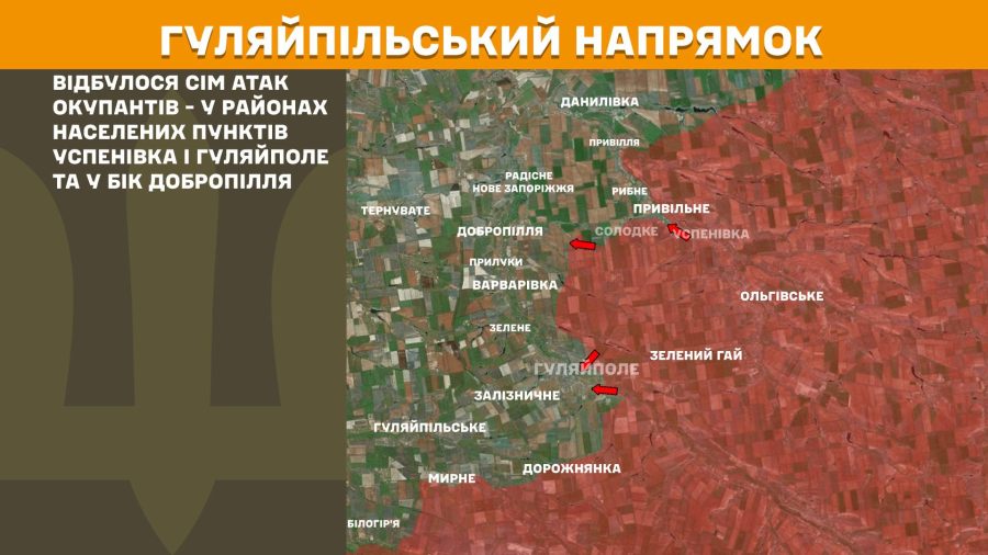 На Гуляйпільському напрямку відбулося сім атак окупантів – у районах населених пунктів Успенівка і Гуляйполе та у бік Добропілля.