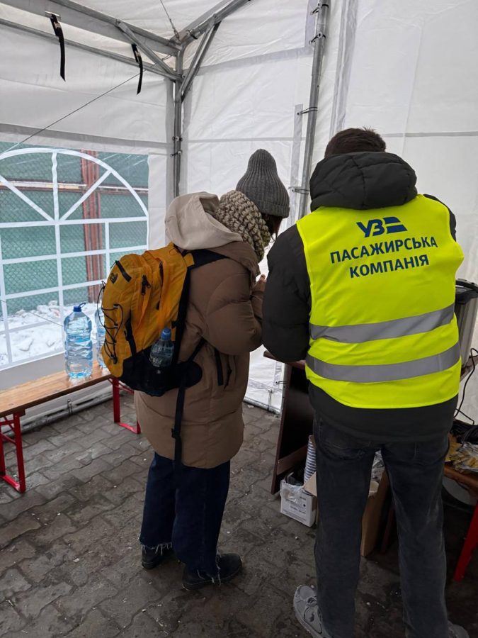 На вокзалі Перемишля встановили намет для обігріву пасажирів, де можна випити гарячий чай і отримати допомогу персоналу. Про це повідомили у пресслужбі «Укрзалізниці».