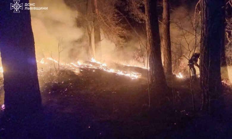 Пожежа трапилася близько 21:35 у селі Страдч Яворівського району, що на Львівщині. За даними надзвичайників, там горіла суха трава на площі близько 300 м².