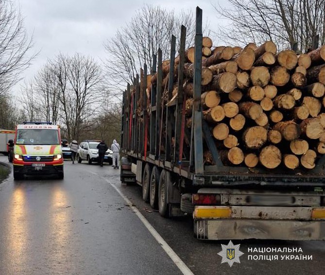 На Золочівщині мікроавтобус зіткнувся з лісовозом: троє людей у лікарні