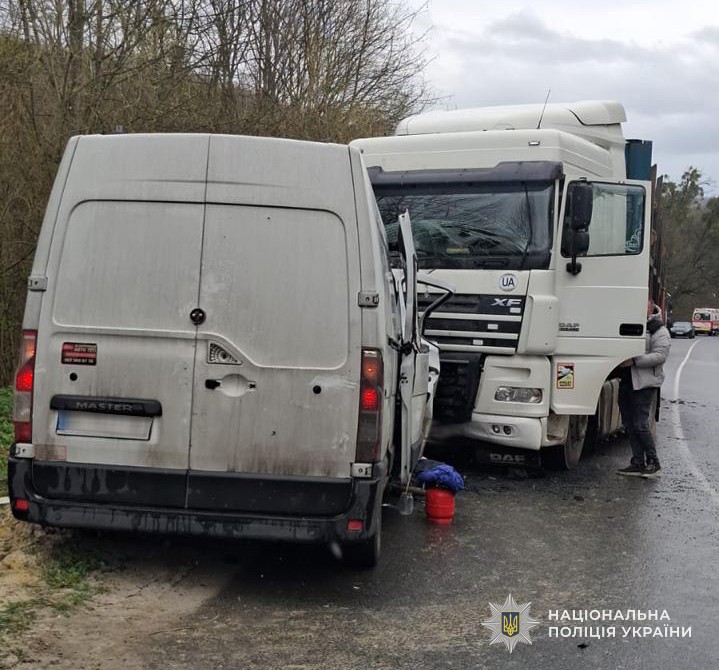 Там відбулося зіткнення мікроавтобуса Renault Master, яким керував 42-річний житель району, та вантажівки DAF під керуванням 55-річного мешканця Золочівського району.