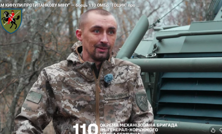 Боєць 110-ї механізованої бригади імені генерал-хорунжого Марка Безручка з позивним «Тоцик» . Скрін з відео бригади