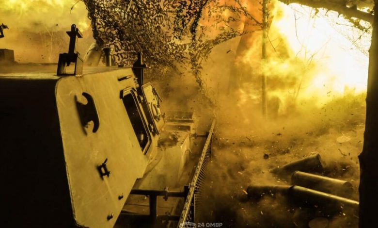 На околицях Часового Яру розрахунок самохідної артилерійської установки 2С3 «Акація» 24-ї ОМБр виконує подвійне бойове завдання: нищить ворожі штурмові групи та техніку і прикриває побратимів-піхотинців.
