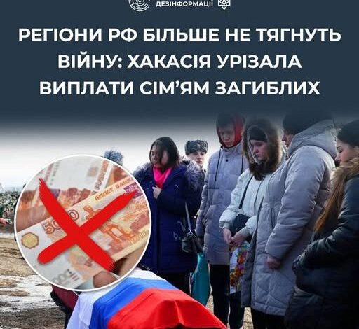 У російській республіці Хакасія влада скасувала раніше обіцяні виплати сім’ям загиблих на війні проти України. Замість мільйона рублів родичі можуть розраховувати лише на 100 тисяч — і навіть ці кошти складно отримати через брак фінансування.