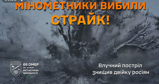 Пара російських штурмовиків просувалася в зоні бойових дій, але мінометники 66-ї механізованої бригади імені князя Мстислава Хороброго мали на них інші плани.