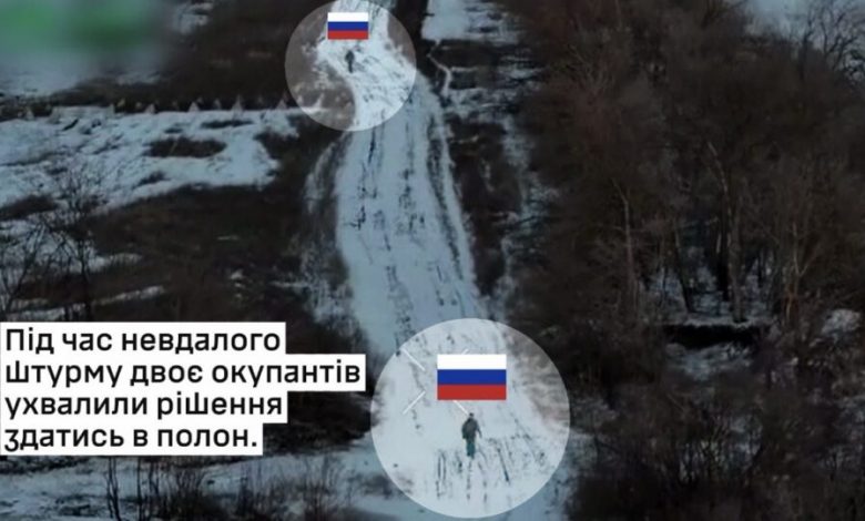 На відео — двоє російських окупантів, які під час невдалого штурму ухвалили рішення здатися в полон. Вони рухалися у бік українських позицій із піднятими руками під супроводом розвідувального дрона Сил оборони.