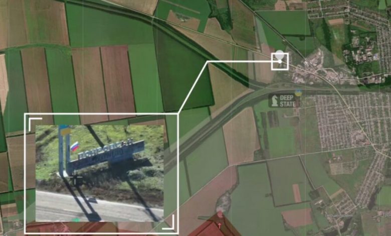 Російські окупанти встановили на стелі при в’їзді до Покровська свій триколор, намагаючись створити враження контролю над цією околицею, проте провисів він там недовго.