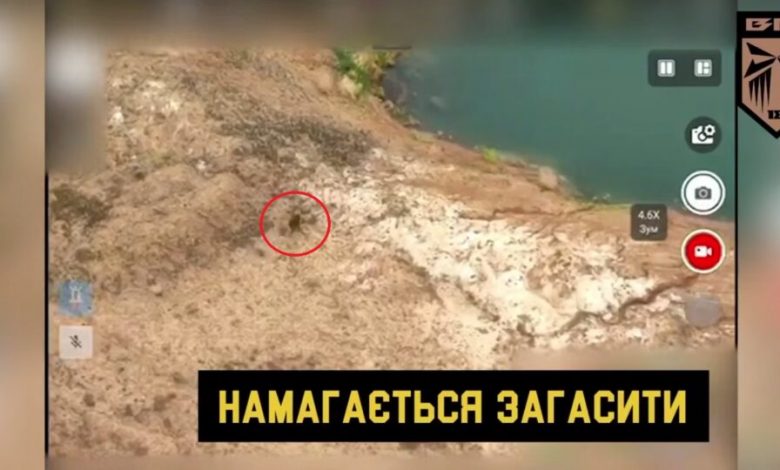 Охоплений полум’ям окупант спробував врятуватися у воді, проте FPV «телепортував» його назад на берег