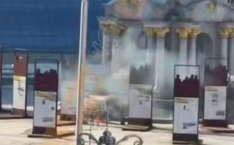 Зокрема у соцмережах опублікували відео, на якому видно димлячі уламки біля Монумента Незалежності в центрі Києва.