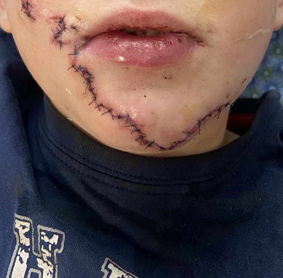 Травма виявилася складною – діагностували глибоке ушкодження м’яких тканин обличчя із залученням слизової оболонки, м’язів і шкіри. Попри серйозність ушкодження, всі тканинні фрагменти були збережені та життєздатні, що дало змогу виконати повноцінне реконструктивне ушивання.