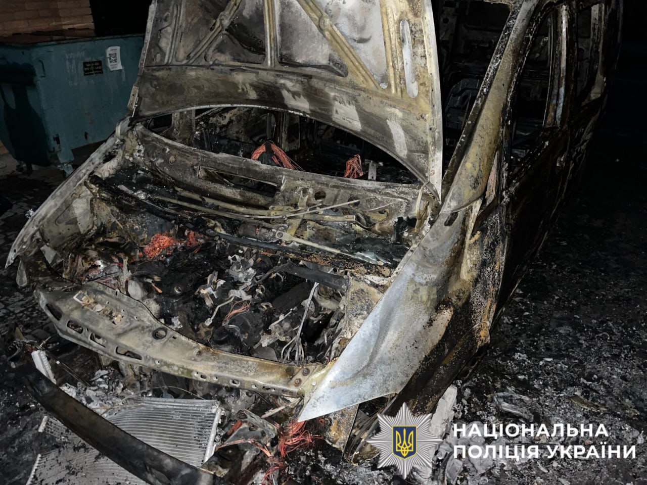 «Чоловік облив легкозаймистою рідиною передню частину автомобілів і підпалив їх, а його спільниця знімала злочин на мобільний телефон для подальшого звіту перед замовником», — зазначили у відомстві.