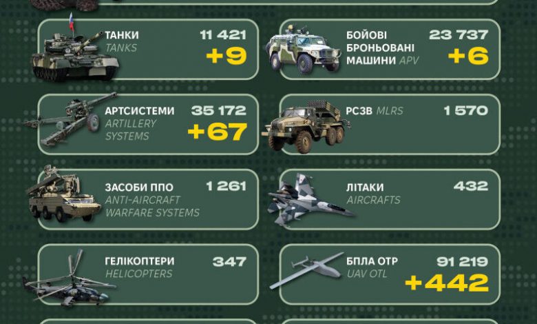 - БПЛА оперативно-тактичного рівня — 91 219 (+442)