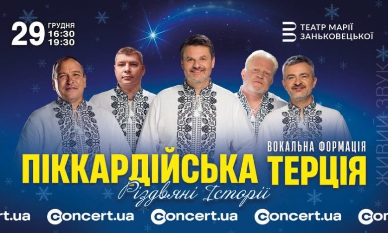 У понеділок, 29 грудня, о 16:30 та о 19:30 у театрі Заньковецької у Львові відбудуться святкові концерти легендарної вокальної формації «Піккардійська Терція» – «Різдвяні Історії». Це програма колективу, яка відкриває сезон зимових виступів та продовжує улюблену для тисяч слухачів традицію різдвяних концертів, зазначають організатори. Про це Львівському порталу повідомили організатори заходу.