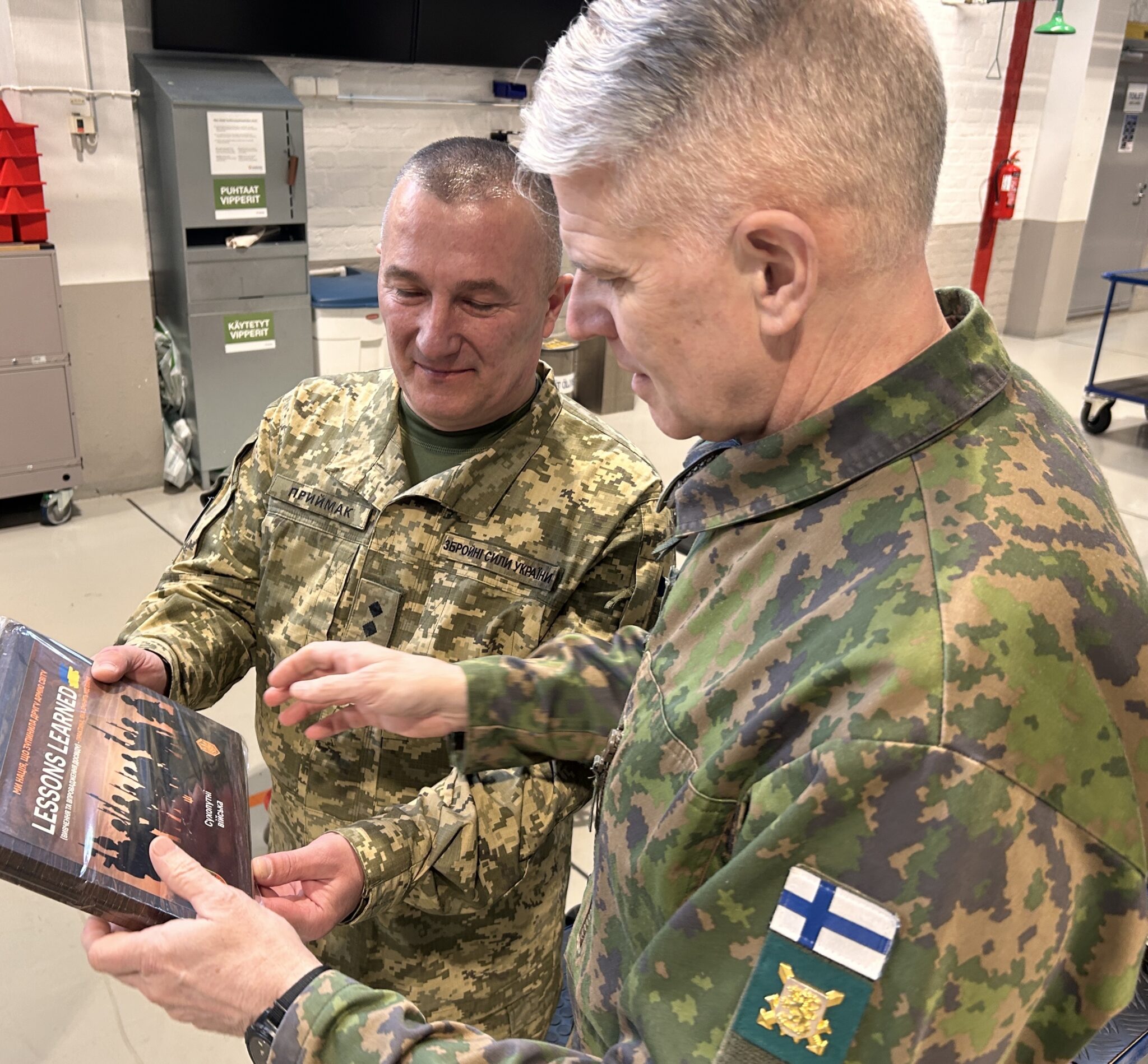 Українська сторона передала командувачу Сухопутних військ Фінляндії генерал-лейтенанту Пасі Валім’які прапор управління Lessons Learned, книгу про історію Сухопутних військ ЗС України та видання кореспондента АрміяInform Євгена Букета «30 війн із Zаклятим сусідом», в якій ідеться про понад тисячолітню історію російсько-українського збройного протистояння
