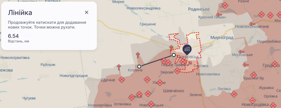 Згідно з даними мапи Deepstate, селище Котлине розташоване розташоване приблизно за 6 км на захід від Покровська. Станом на 21 листопада майже вся його територія перебуває в окупації.
